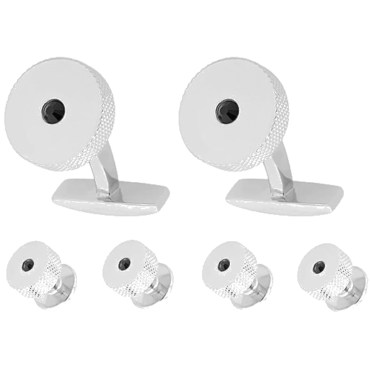 Silver Cufflinks & Shirt Studs Set with Crystal Inlay