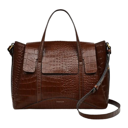 The Chancery Faux Croc Walnut Brown Medium Flapover Grab Bag