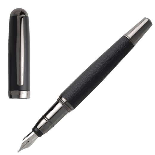 Designed and created by Boss is this stunning black fountain pen. This black fountain pen has been created as part of their Advance collection and is in the subcategory 'Advance Grained'. What makes this fountain special is the soft textured leather barrel with the contrasting shiny brass and chrome features. The cap of this fountain pen has been made out of bras with a matt black lacquer finish. The shiny chrome features bring out the textured barrel. The shiny chrome clip of this fountain pen can be personalised with the initials of a loved one of your own initials. When purchased, this black fountain pen will be presented inside a Boss presentation box that will have the option of being plaque engraved. One the day of purchase, a two-year warranty certificate will be issued.