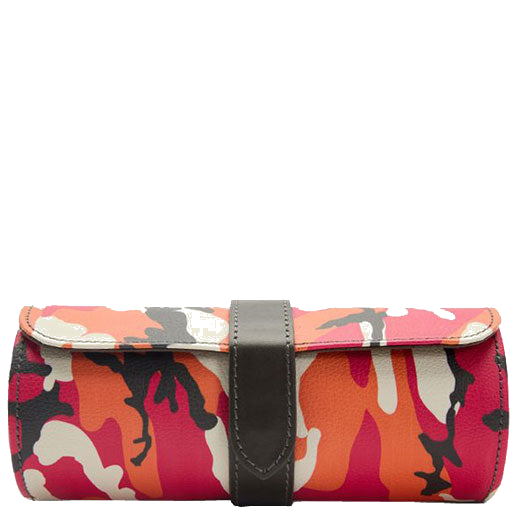 Influenced by the world around us, the Elements collection uses contemporary colours and patterns. Inspired by Fire, this WOLF 1834 watch roll features reds, oranges and browns. The Elements Fire triple watch roll features two watch guards and a hidden jewellery capsule. Lined with brown faux suede, this red camo print watch roll will be the perfect travel companion.