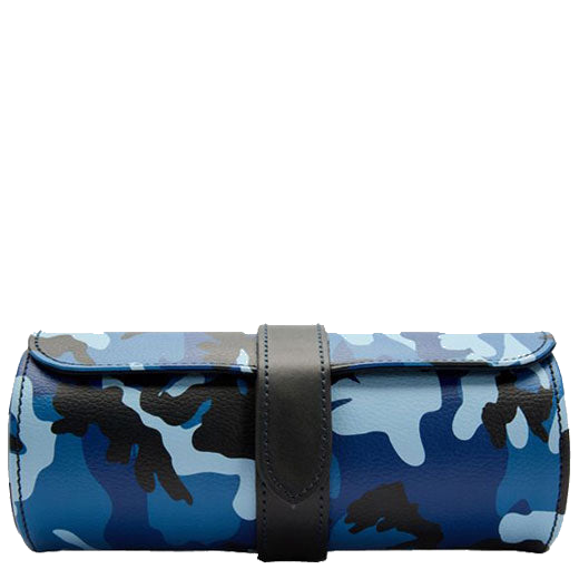 WOLF 1834's Elements collection is all about the world around us. The Elements Water range is inspired by the true aesthetics of the world. Crafted in a variety of different blues, the Elements watch roll is made out of vegan leather. This blue triple watch roll is lined with faux blue suede and features two watch guards and a hidden jewellery capsule. The blue camo print watch roll has optional embossing upon purchase.