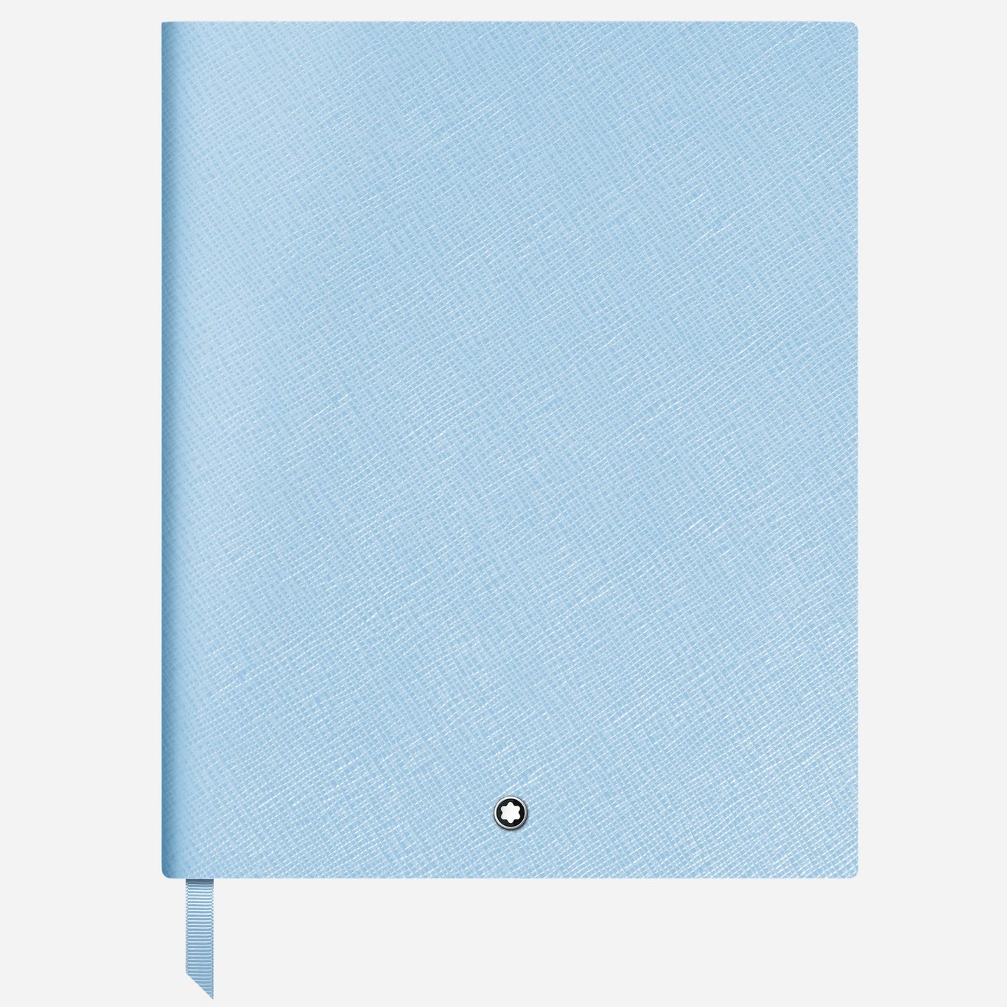 This expertly handcrafted Montblanc notebook has been created using Sartorial pale blue leather and 96 exquisite sheets of fast drying lined paper, plus an attached blue fabric bookmark. Elegantly designed to capture your thoughts and dreams, this practical large notebook is ready to accompany you anywhere, transitioning effortlessly from your desk to your bag. The Montblanc iconic snowcap emblem is seen on the front cover, and the brand name is printed at the bottom of each page.