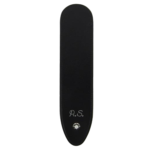 This Montblanc leather pen sleeve has been wonderfully embossed for a present. The pen sleeve has been embossed with a persons initials and has been done using a silver foil transfer to make the letters stand out. The engraving has been completed on the front of this pen case for a discreet but personal gift. The font used on this leather wallet is our Cursive font - a simple font with a nice curve to the lettering.