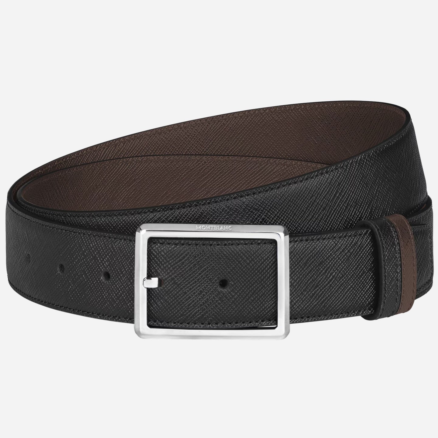 Montblanc 35 mm Rectangular Pin Buckle Reversible Black and Ebony Sartorial Leather Belt
