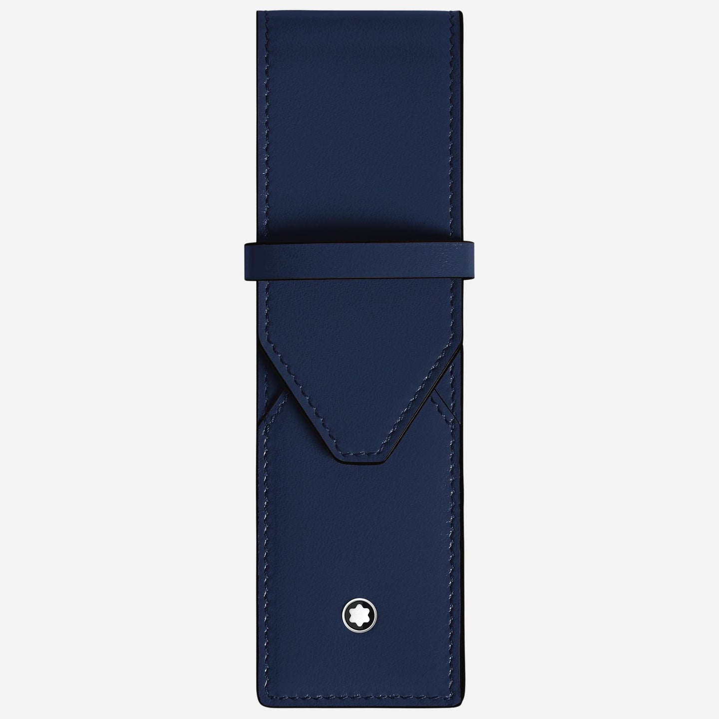 This luxury two-pen pouch has been designed by Montblanc and created using elegant ink blue Meisterstück leather. The overlapping silhouette is inspired by the shape of an envelope, the pouch secures shut with the flap tucking into the loop, and inside, it's able to stow your Montblanc Meisterstück Classique or LeGrand pens securely. The iconic Montblanc snowcap emblem is seen on the front, and the Montblanc brand name is embossed subtly on the back. This Meisterstück two-pen pouch will be presented inside a Montblanc bespoke presentation box, and will be accompanied by a 2-year international warranty/guarantee booklet filled out on the day of purchase.