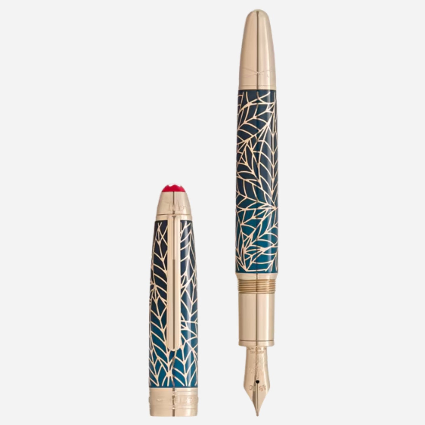 - Cap: Lacquer / Teal with signature gold-coated leaf pattern.