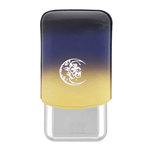 Every cigar enthusiast needs somewhere to keep their cigars safely and this triple cigar case has been created by S.T. Dupont Paris for the Montecristo 'La Nuit' range. The case splits in half so you can place your cigars inside and enclose them. The case itself is made from polished stainless steel with a slipcover made from smooth leather in blue and yellow ombre which slots over the top creating a compact case for your cigars. The leather part of the cigar case has the coat of arms detailing on one side and the 'La Nuit' design on the reverse. This Montecristo 'La Nuit' triple cigar case will be presented inside an S.T. Dupont branded gift box.