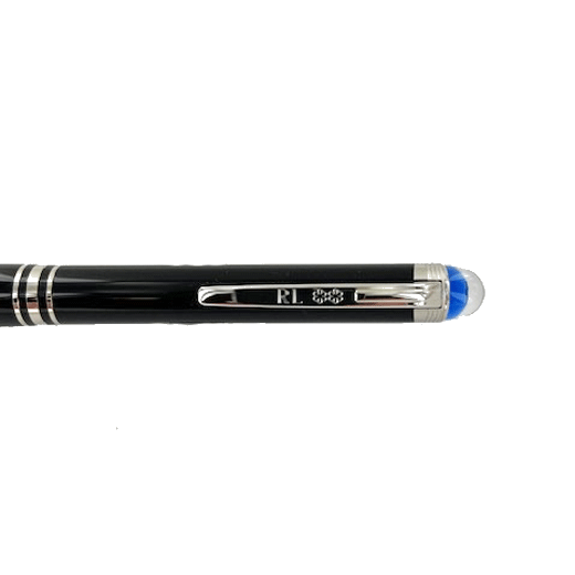 An engraved Montblanc Starwalker ballpoint pen for a restaurant based in London, who were awarded two Michelin stars in 2024. This Montblanc Starwalker pen has been engraved with initials and two Michelin stars to mark the occasion. A personalised message can be engraved free of charge into the cap of a Montblanc pen.