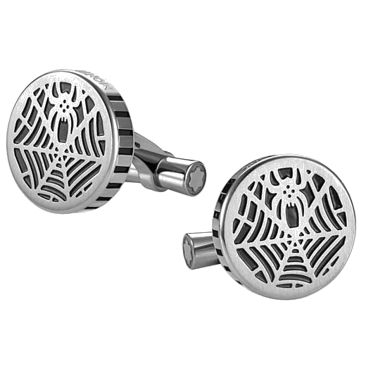 This stunning pair of masculine and modern cufflinks have been crafted from stainless steel and features a spider and web pattern which has a black PVD inlay to which would make them stand out from your shirt. The cufflinks feature a fixed curved arm mechanism which has been engraved with the Montblanc emblem on each end, giving these cufflinks instant brand recognition. The side of the cufflinks feature a stripped pattern and the Montblanc brand name engraved for a touch of subtle branding. The Montblanc stainless steel spider cufflinks come complete with their very own bespoke Montblanc gift box and guarantee booklet. These Montblanc cufflinks would be the perfect gift for a modern man looking to make statement.