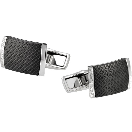 These Montblanc Creative cufflinks for men in the UrbanWalker range of jewellery feature a stainless steel build with a crossed diagonal pattern presented in black anthracite PVD across the front of the cufflinks. At the sides of the Montblanc stainless steel cufflinks the Montblanc brand name has been engraved on one side of each cufflink. The brand name has also been engraved on the back of the cufflinks on the whale tail arm closure mechanism. Along the side of the stainless steel cufflinks 'Germany' and 'Steel' have been engraved. The Montblanc Creative UrbanWalker Extreme cufflinks look smart and fashionable, the perfect fashion accessory reminiscent of the StarWalker Extreme pen.