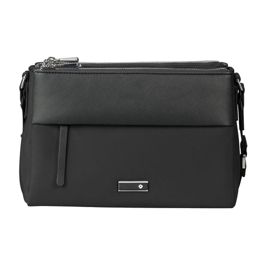 This Samsonite 3-compartment Zalia 3.0 shoulder bag is made with 100% post-consumer recycled PET in black. This Zalia 3.0 shoulder bag by Samsonite contains a front zip pocket on the exterior, with three main zip compartments. The cross-body strap can be adjusted to your desired length. On the inside, there is a small zip pocket for storing small valuable items, with a neutral grey lining all over. This is a great everyday bag if you don't like to carry too much, or for when you are travelling. This Zalia 3.0 black 3 compartment shoulder bag has the Samsonite logo on a small plaque on the front for subtle branding.